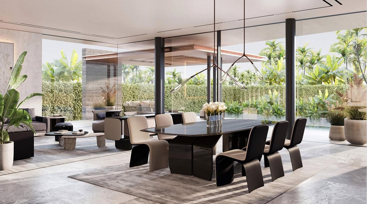Интерьеры каждой виллы оснащены бытовой техникой премиум-класса и элементами декора от брендов Gaggenau и Lalique, что гарантирует изысканный и элегантный стиль жизни. Из каждой виллы открываются потрясающие виды на лагуну, воплощая идеальное сочетание эстетики и функциональности.